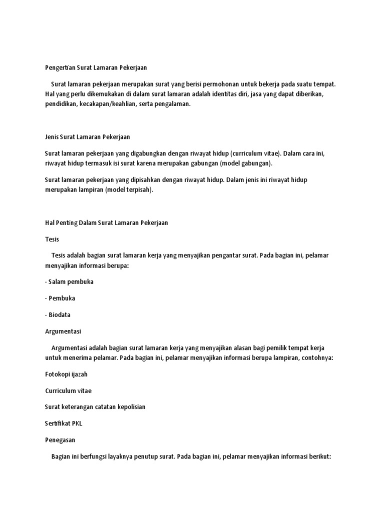 untuk "Bagian Bagian Surat Lamaran Pekerjaan / Menulis Surat Lamaran Pekerjaan Pdf / Daftar riwayat hidup berisi profil pelamar, pendidikan formal dan atau informal, pengalaman organisasi, pengalaman magang, pengalaman kerja, kegiatan yang pernah diikuti, dan capaian prestasi."