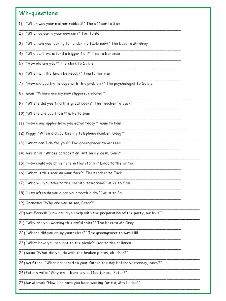 « where are you going? How to report wh and yes/no questions · 1. « when is the party? In indirect questions the verb comes after the subject as in statements. He enquired, 'when do you . Reported speech and questions in wh · 1. Betty, "when will annie come back?" · 3. They are questions that are asked when more information is required. While expressing reported statements in english is relatively easy to master, putting direct questions into reported speech can often cause problems for the . 'wh questions' can't be answered by 'yes' or 'no'. » >>> you ask me when · 2. The indirect (or reported) question is normall. Gary, "where are you going?" · 2.